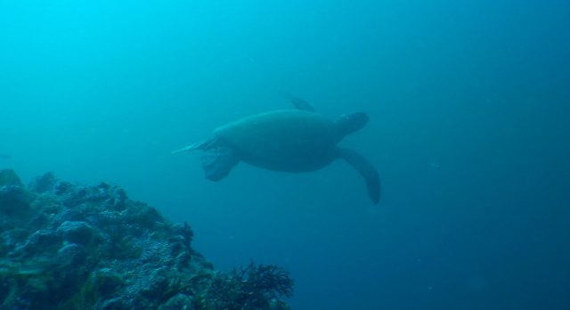 水中は少し白濁していますが、見えるところは15mほどあります。
